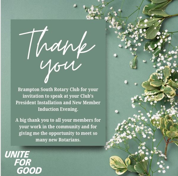 I am deeply honoured and humbled to be the President of Rotary Club of Brampton South.